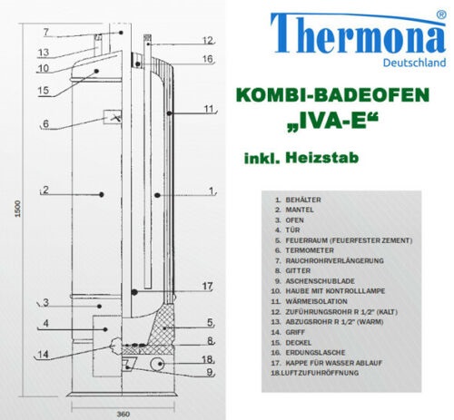 Der robuste Badeofen ermöglicht Ihnen durch die Verwendung von festen Brennstoffen die Bereitung von warmem Wasser.