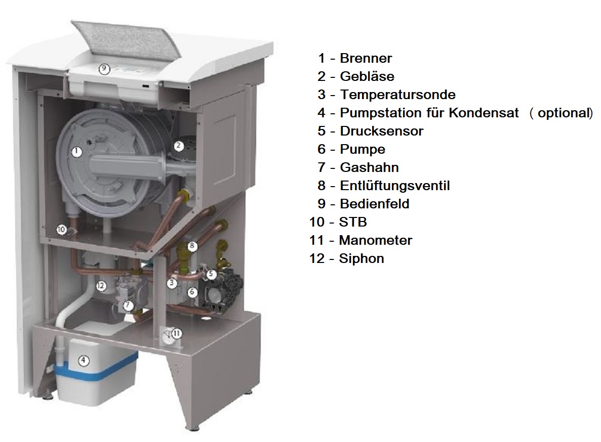 • Kondensationskörper mit Edelstahl-Wärmetauscher für lange Lebensdauer