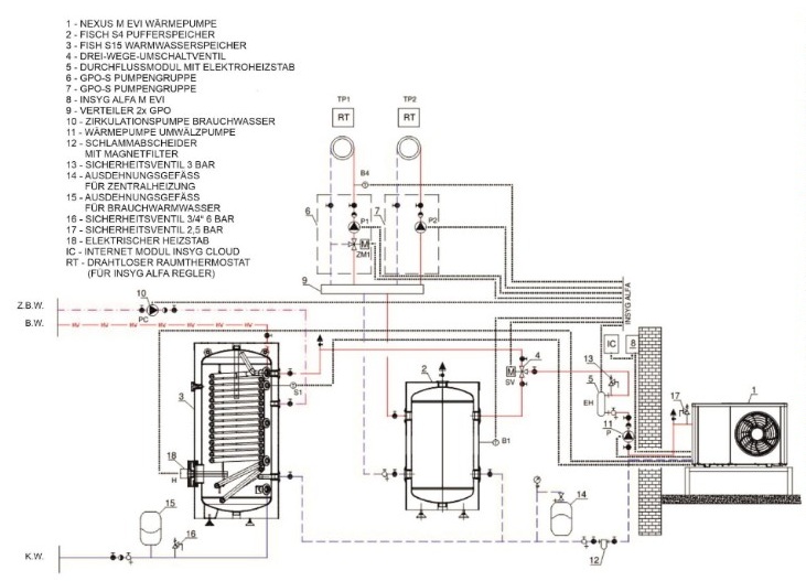 - Steuermodul Insyg Alfa (Elektrobox): Erweiterte Regelung für bis zu zwei Heizkreise und Warmwasserkreislauf, inkl. 4,3"-Touchdisplay.